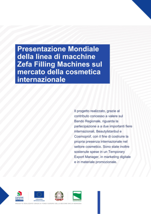ZEFA, con la divisione Filling, è sempre più internazionale. La qualità e la tecnologia del Made in Italy viaggiano nel mondo attraverso i nostri sistemi di riempimento e tappatura, costruendo partnership solide, aprendo nuovi mercati e consolidando il ruolo di ZEFA nel panorama globale del packaging. Il progetto ha sostenuto attività strategiche per la crescita